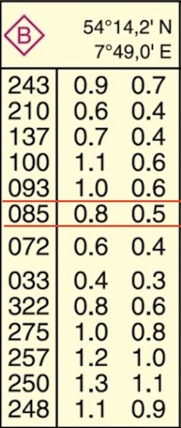 - Wie setzt dort zu dieser Zeit der Strom in Richtung (StR) und Stärke (StG) nach Seekarte?